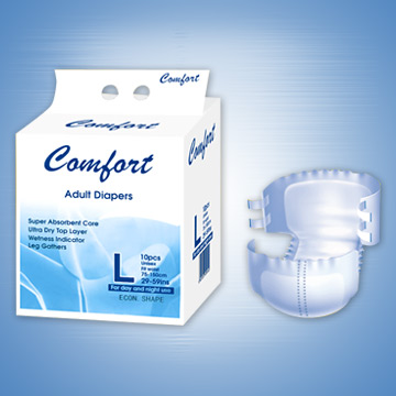 Adult Diapers is designed for those who are confined to bed, inconvenient in activity, and patients after operation. : 1) Endlong shape 3D retainer, stoping side leak completely. 2) High polymer absorbent material, absorption capacity and dry performance is excellent. 3) Soft & comfortable cotton layer surface, leads urine diffuses and absorbs quickly, keep surface dry and clean. 4) Saddle-shape fit clipping, shorten the distance between legs and bring more comfort. 5) Double line safe adhesive tape, fix the diaper and avoid falling off, can adjust position for stickup, easy to wear. 6) Anti-bacteria absorbent material, avoid bacteria infection. Clean up the foul odor.