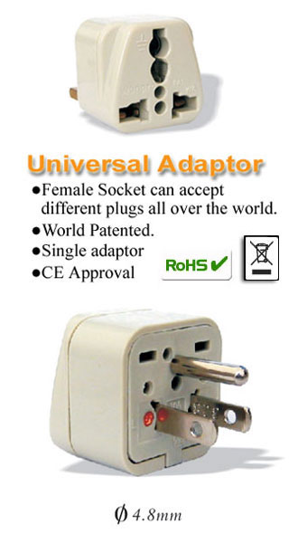 | Universal Adapter for Taiwan, Japan, U.S.A., Canada, Philippines, China, Thailand |