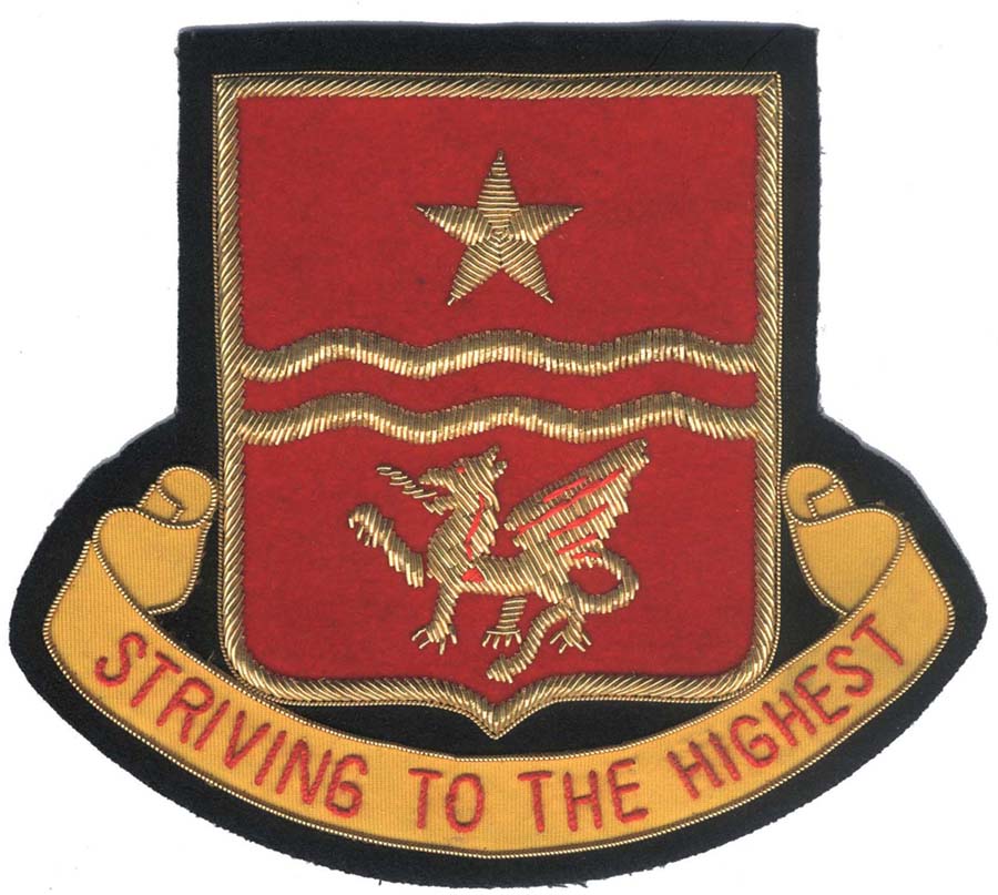 This Badge TEB-8100 is made of Golden Bullion Wire & Silk Thread on Red Blazer Background.