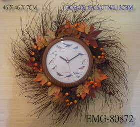 New idea in natural twig wreath wall clock with beautiful bird song on every hour. Suitable for home and indoor garden decoration.
