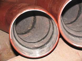 | SHS-self-propagating ceramic composite steel pipe and fittings, the new generation of wearable and corrosion resistant engineering pipeline, belongs to "863" Hi-tech Plan products. It is mainly used as grindable granule and corrosives in electric power, metallurgy, mining, coal, and chemical industry when transporting sandstone, coal fines, clinker, and aluminum liquid, etc. It is the ideal wearable and corrosion resistant engineering pipeline, with wear resistance 15 times higher than common steel pipe, smooth inner surface, and favorable liquor resistance. |