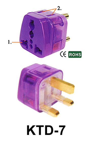 Item No.: KTD-7 Female Socket can accept different plugs all over the world. With NEMA-1-15R Receptacle. World Patented. CE Approval. RoHS Compliant Rated: 13A 250V Suitable for Area: England, Hong Kong, U.A.E,Singapore, Malaysia. |