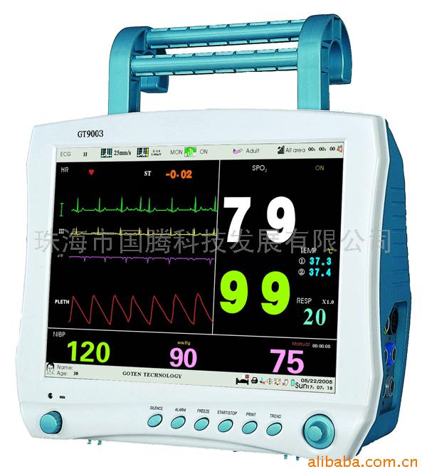 Features: 1) Standard configuration: ECG, RESP, NIBP, SpO2, TEMP, HR 2) Optional configuration: Printer, ETCO2, single/dual IBP, dual TEMP 3) Built-in re-charged battery: for use of over 2 hours 4) 12.1" color TFT LCD 5) Nine waveforms; nine operation interfaces 6) ST segment analysis; analysis on 23 kinds of basic arrhythmia; 60-minutes recent ECG waveforms playback 7) Simultaneous 7-lead ECG display 8) Dynamic RESP oxygenation combined graphics inspection 9) Drug calculation 10) Cut-off power protection; 30-day trends data and waveforms storage list; 2,880 groups of blood pressure data storage 11) Digital SPO2 soft fingertip measurement technology, anti-shock, anti-interference, anti-low temperature, low-flow, anti-knock and anti-bump 12) Anti-HF electronic surgical unit and anti-defibrillation, for monitoring in surgery or for cardiac care 13) Available to connect with central monitor system