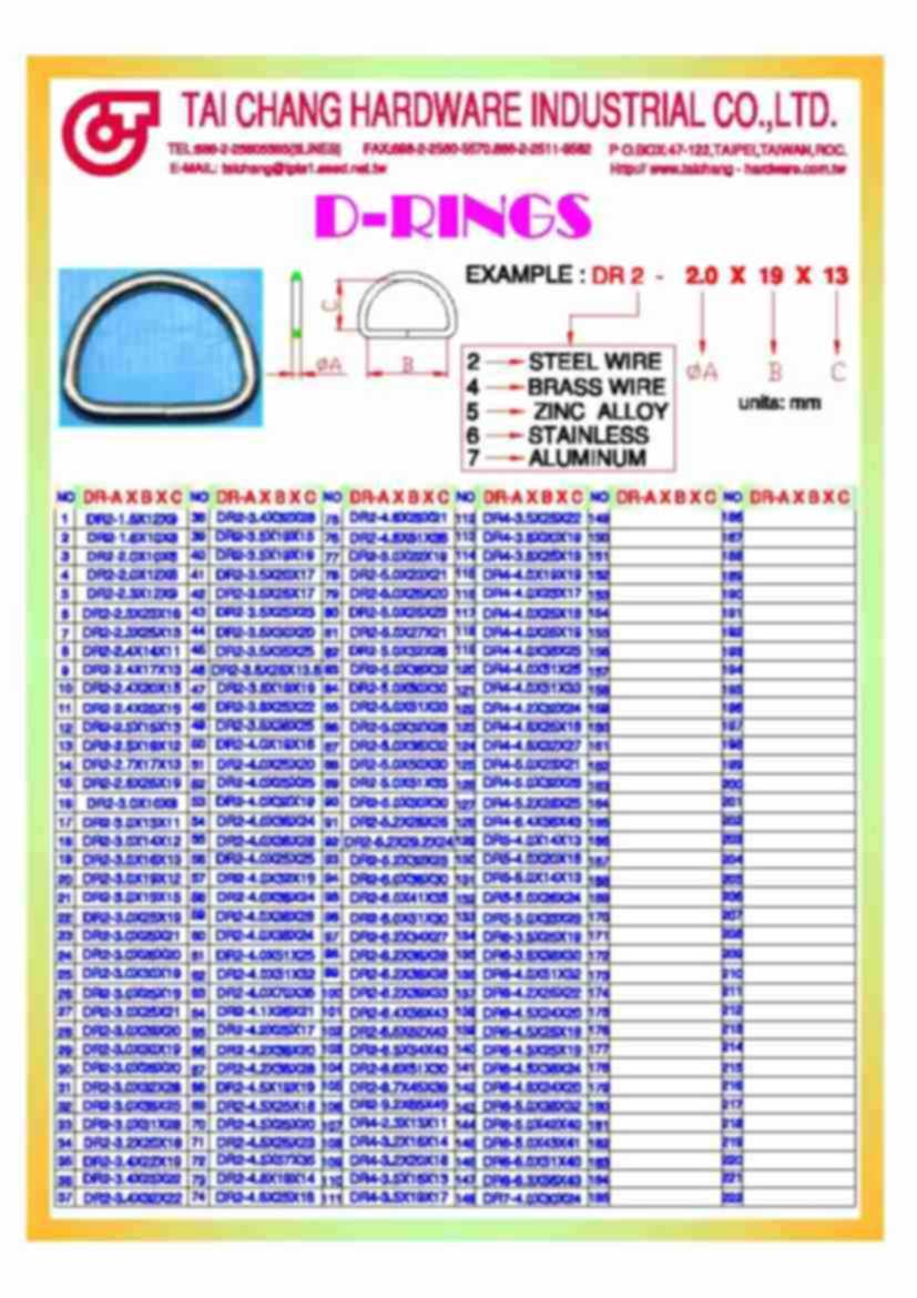 We are a manufacturer and exporter of Hardware Accessories such as Buckle (Cam Buckle, Sliding Buckle, Military Buckle, Ratchet Buckle, Press Buckle), Hook (Snap Hook, J Hook, S Hook, Flat Hook, U Tie Hook, Spring Hook), Cargo Lashing, D-Shackle, Anchor Shackle, Quick Link, O-Ring (D-Ring, Oval-ring, Pentagon-Ring, Square-Ring, Triangular-Ring), Lanyard, Dog Leashes, Hanger, Loop, Rivet, Eyelet, Clip, Lock, Bottom Stud, Snap Fastener, Card Holder and other various kind of metal parts in China and Taiwan since 1974.