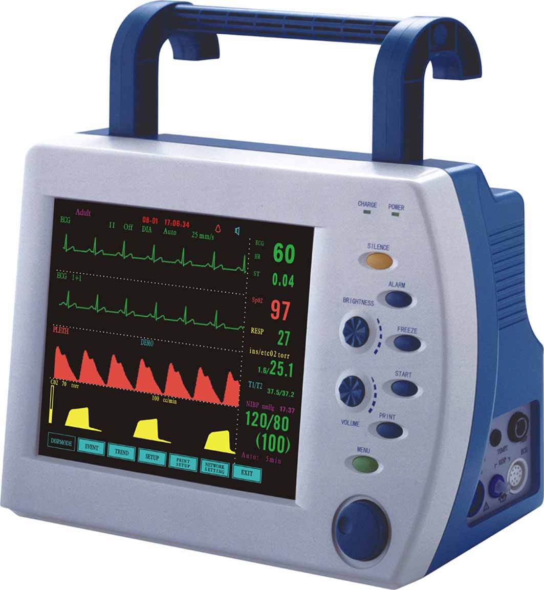 Standard configuration: ECG, HR, PR, SpO2, ST analysis, RESP*2 (RA-LL impedance and nasal cavity), NIBP (with venous punch), TEMP*2(surface and rectal type), Drug dose calculation.