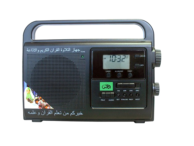 * Built-in complete Quran,114 surahs with a total of 6236 verses,Azan and Prayer *Recited by Sheikh Abdul Rahman Al-Sudais and Sheikh Saoud Al-Shuraim * Digital Quran player with Radio FM, AM * Recite, Listen, Learn and Memorize The Holy Quran anywhere & anytime. * Easy to operate * Automatic turn-on setting is available * The Closing Tone will be automatic play after recitation. * Reminded Prayer Timings by Azan. * LCD displays the number of Verses of the Quran. * Best choice for learning Quran and Arabic. |