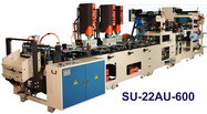 Model: US-22AU-600 1.Business file folder is stationery products made by multi layer PP sheets. The automatic file-folder making machine is designed especially for maknig this type of products. 2.An advantage of saving manpower, lower rate of waste material, simplify working procedure are as most distinguishing features of US-22AU-600. 3.Un-winder unit x 5 PP material roll shaft are equiped with pneumatic tension controller, operate in coordination with servo motor and computer numerical control. It is able to provide high accuracy of product making. 4.From initial stage e.p.c., sheet take off, punching, metal stic & clip inserting, further to logo hot stamping, ultrasonic sealing, creasing and cutting are completely automatic. 5.Easy unwinder material roll loading design & sheet edge position control function, ensure product remain consistent in its making. 6.Main products: A4, FC business file making. |