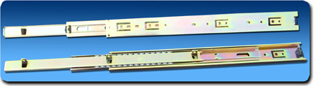 45mm Full-extension Self-closing Size: 12"-28" Material: Work hardened cold rolled steel Thickness of Material:1.0/1.0/1.2mm,1.1/1.1/1.4mm,1.2/1.2/1.5mm Load rating:45kg/450mm Features:With separable release latch,simple type installation(and inner part of slide installation) Finish:Electro-zinc plated with clear or color chromate,black chromate available Application: Office furniture,kitchen cabinets and home drawers |