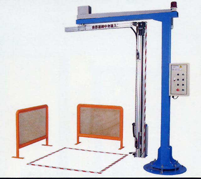 Sutiable for packing line with limited space. Save time, Labor & Space. Top & bottom wrapping sensored by photoelectric detection, 2 sets of safety protection switches to protect both machine and the operator. Ideal for wrapping light and loose pallet loads.