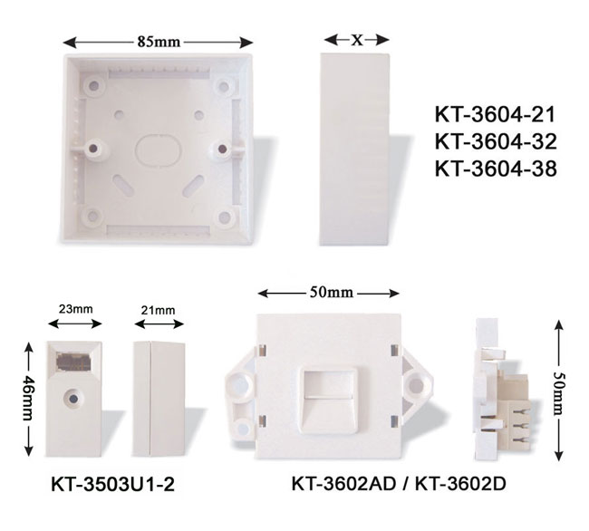 KT-3604-21 KT-3604-32 KT-3604-38 - Back Cover for Line Jack Unit - Color : White - Size : 85x85x21mm, 85x85x32mm, 85x85x38mm