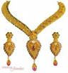 91.6 fine hall marked necklace with intricate craft work done by the seasoned artisans, semi-precious and imitation coloured jem stones are used in between the antique work. styled as if, looks like as age old royal jewelry designs.