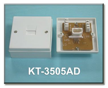 Item No.: KT-3505AD LJU 2/3A Secondary Telephone Surface Jack with IDC Terminal Single Gang Size : 68 x 68 x 29 mm with back box Color : White |