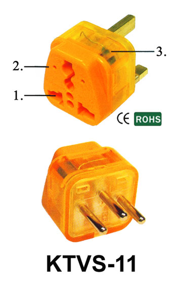 Item No.: KTVS-11 Female Socket can accept different plugs all over the world. (V) With voltage indicator (S) With surge protector. World Patented. CE Approval. RoHS Compliant Rated: 10A 250V Suitable for Area: Switzerland. |