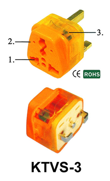 Item No.: KTVS-3 Female Socket can accept different plugs all over the world. (V) With voltage indicator (S) With surge protector. World Patented. CE Approval. RoHS Compliant Rated: 10A 250V Suitable for Area: For L-Shaped receptacle. |