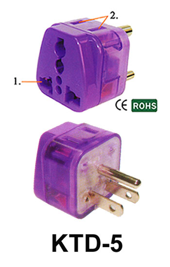 Item No.: KTD-5 Female Socket can accept different plugs all over the world. With NEMA-1-15R Receptacle. World Patented. CE Approval. RoHS Compliant Rated: 10A 250V / 15A 125V