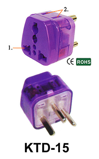 Item No.: KTD-15 Female Socket can accept different plugs all over the world. With NEMA-1-15R Receptacle. World Patented. CE Approval. RoHS Compliant Rated: 10A 250V Suitable for Area: Egypt, Israel, U.A.E |