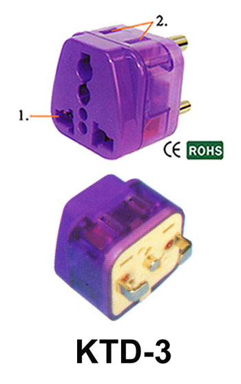 Item No.: KTD-3 Female Socket can accept different plugs all over the world. With NEMA-1-15R Receptacle. World Patented. CE Approval. RoHS Compliant Rated: 10A 250V Suitable for Area: For L-Shaped receptacle. |