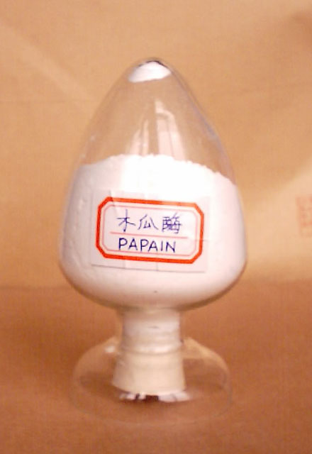 Papain is a type of vegetable protease which is isolated from the tropical fruit papaya through purification technology and has strong biological activity and the decomposing ability of protein. Papain is widely used In the line of Medical Application, Food Leather Industry, Cosmetic Industry, brewing industry ,etc. We supply coarse and refined papain, whose activity ranges from 50,000 u/g to 3,500,000 u/g. It features good insolvency he keptunder 10% in normal indoor temperature within a year. It has even better effect under low temperature. Medicine industry :Papain tablets, papain eating throat tablets, papain digestive capsule and papain serum etc Made from papain compound can help ease swelling, alleviate inflammation, improve immunity, promote digestion and diminsh intestinal parasite. Food industry:Papain can hydrolyze the animal and plant protein, as well as placenta and bean, thus, the papain can be made into softener for biscuits, tenderizer for meat and purifying agent for beer and wine ferment etc. It is widely used in wine brewing industry, soy making and beverage manufacturing industry. Feed industry:Papain can be widely used as additives in the forages for such animals as pigs, oxen, sheep, chicks, ducks, geese, fish, shrimps, eels and cows to increase the availability and inversion of protein, decreasing the cost for forages and exploiting sources of protein