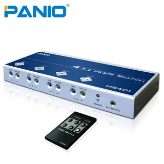 PANIO HS401 4-Port HDMI Switch The HS401 4 Ports HDMI audio/video switch, is a multi-input, single output unit designed to conveniently connect, four HDMI source units such as, DVD player, Set top box, Satellite receiver, etc. then direct that input to a single HDMI monitor.